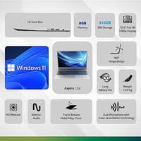Acer Aspire Lite 12th Gen Intel Core i3-1215U Premium Metal Laptop (8GB RAM/512GB SSD/Windows 11 Home) AL15-52, 39.62cm (15.6") Full HD Display, Metal Body, Steel Gray, 1.59 Kg