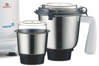 The Bajaj Twister 750W Mixer Grinder is a high-performance kitchen appliance designed for efficient daily use. Its 750-watt motor operates at up to 20,000 RPM, making it ideal for grinding fine masalas, blending batters, or preparing chutneys with ease. It includes three stainless steel jars for dry, wet, and chutney grinding, all equipped with multifunctional blades for consistent results. Safety is ensured with a lock mechanism and anti-slip feet, while easy-grip handles add user comfort. The compact White/Blue design complements modern kitchens. Comes with a 2-year product warranty and 5-year motor warranty. Made in India.