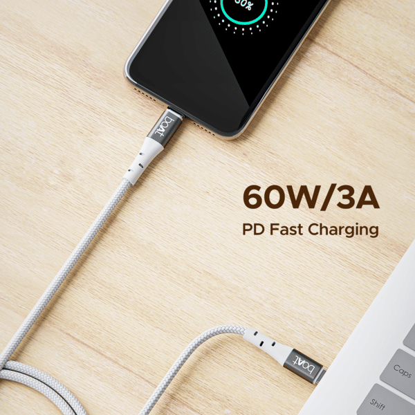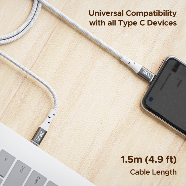 boAt C300 Fast Charging Cable | Charging Cable with 480 Mbps Data Transfer, 1.5m Cable Length, 10,000+ Bend Lifespan (White)
