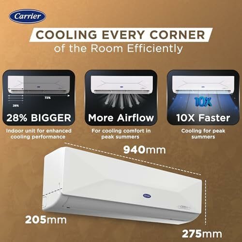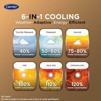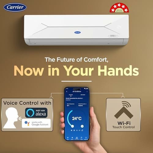 Elevate your comfort with the New 2025 Carrier Ester Edge Smart Air conditioners, a perfect companion for modern homes. Engineered to deliver exceptional performance, this AC blends innovative technology with user-friendly features, ensuring a seamless cooling experience tailored to your lifestyle. The standout Flexicool Inverter Technology offers six energy-efficient modes, allowing you to customize cooling based on your preferences while saving power. Additionally,it also provides versatility, adapting effortlessly to different weather conditions and room requirements. Breathing clean air is a breeze with its advanced dual filtration system, featuring a PM 2.5 filter and HD filtration, which effectively remove fine particles and impurities from your indoor air. For added convenience, the