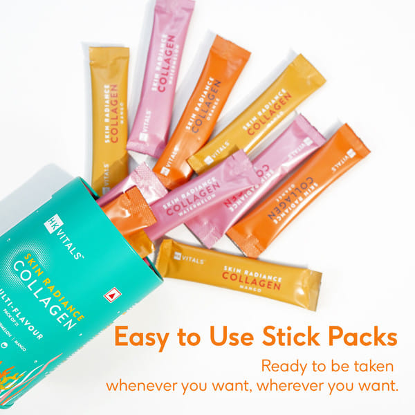 hk vitals Marine Collagen Supplements (Multi-Flavour, Pack of 21) |With Biotin, Vitamin C & E | For Healthy Skin, Hair & Nails