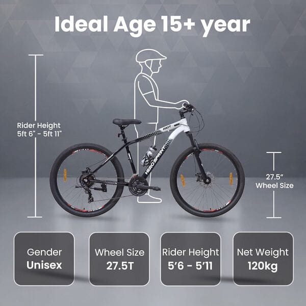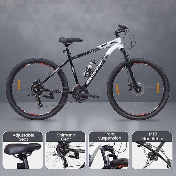 HERO RIOT 27.5 T Mountain Cycle (21 Gear, Black, White, Only Front Suspension)