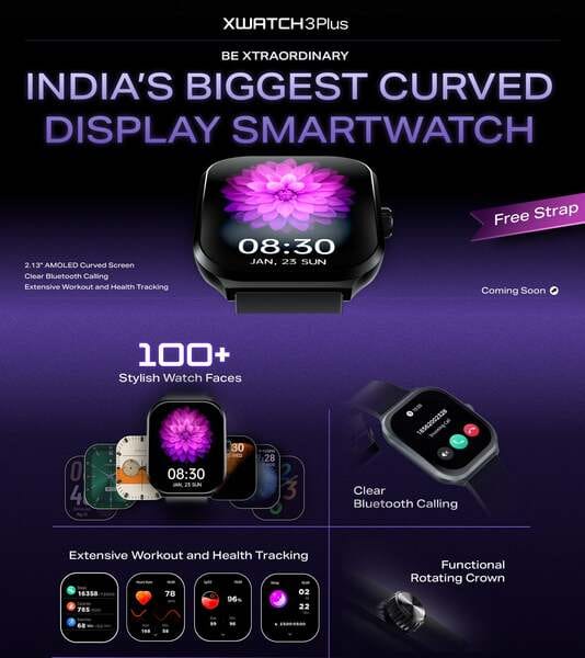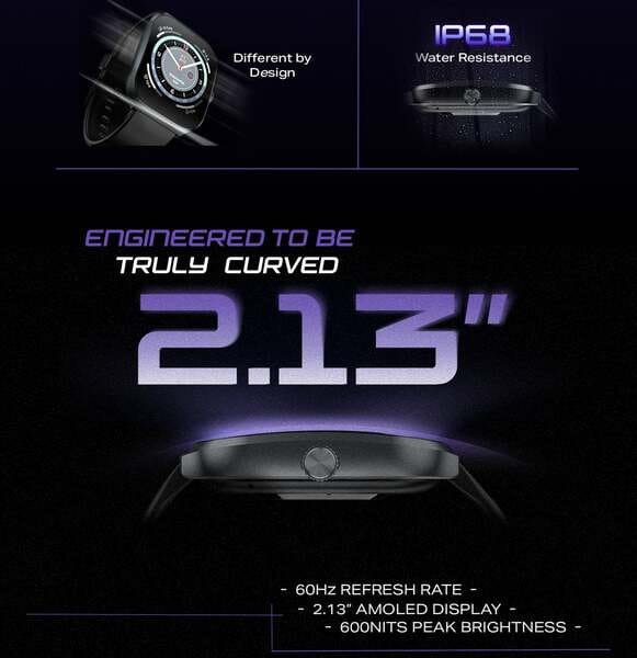 - Features: 2.13" AMOLED Curved Screen, 7-Day Battery, 100+ Watch Faces, Sports Modes, Bluetooth Call Support, Health Monitoring, Functional Crown