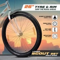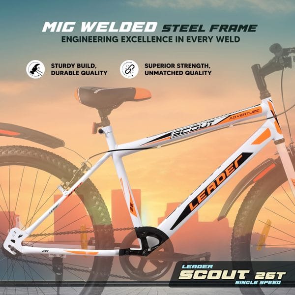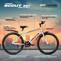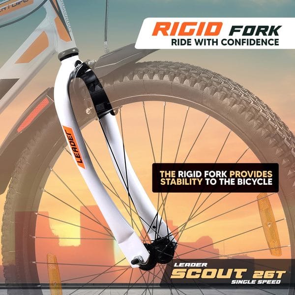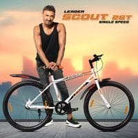 Leader Scout MTB 26T Mountain Bicycle/Bike without Gear Single Speed for Men - Glossy White, Ideal for 10 + Years, Frame Size: 18 Inches