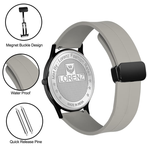 Lorenz Slim Case Analog Watch, a perfect blend of style and functionality. This Green timepiece boasts an elegant design with a slim case, making it a versatile accessory for both casual and formal occasions. The silicon strap, featuring a magnetic lock, ensures a secure and comfortable fit throughout your day. Lorenz, a trusted brand in the world of watches, brings you this high-quality timepiece powered by a precision quartz movement. You can rely on its accuracy to keep you punctual in your daily activities. The watch is not just about function; it's a fashion statement. Choose from a range of vibrant colors for the silicon strap to personalize your look and express your unique style. Wear it with confidence, This timepiece is not just a way to keep time; it's an investment in a reliable and stylish accessory that complements your lifestyle. Elevate your wrist game with the Lorenz Slim Case Analog Watch where fashion meets function.