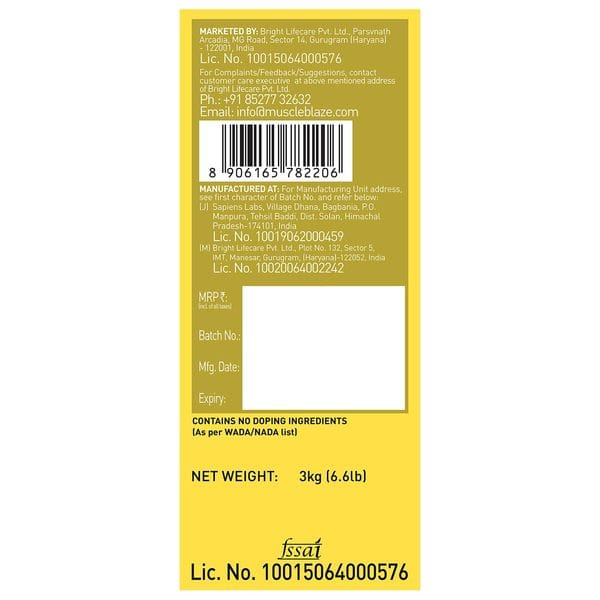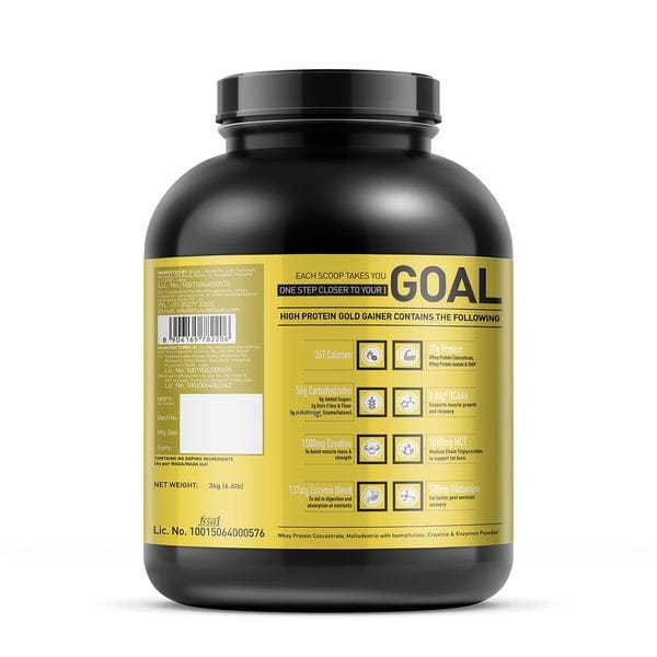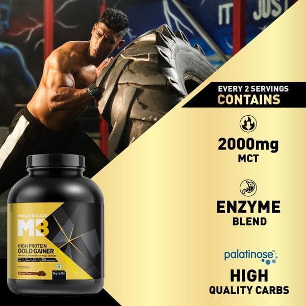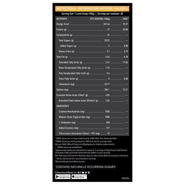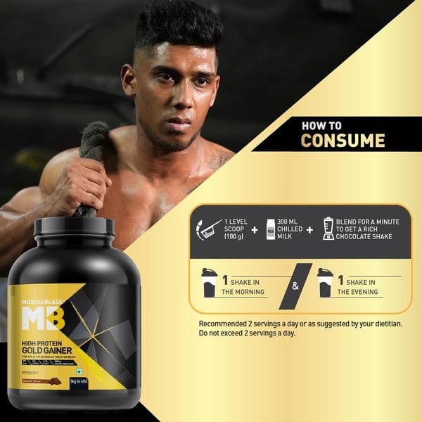 MuscleBlaze High Protein Gold Gainer (Chocolate, 3kg / 6.6lbs, 30 Servings)