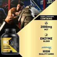 Ingredients: Milk Solids (Skimmed Milk Powder, Whey Protein Concentrate & Whey Protein Isolatel, Maltodextrin, Palatinose (Isomaltulose), Cocoa Powder, Fat Powder, Nature Identical Flavoring Substances, Creatine Monohydrate, Oat Fibre, Medium Chain Triglycerides, Oat Flour, L-Glutamine, Emulsifier [INS 322 (ill.Enzymes (Amylases, Lactase & Proteases), Sweetener INS 955) & Pterocarpus marsupium extract 95%.