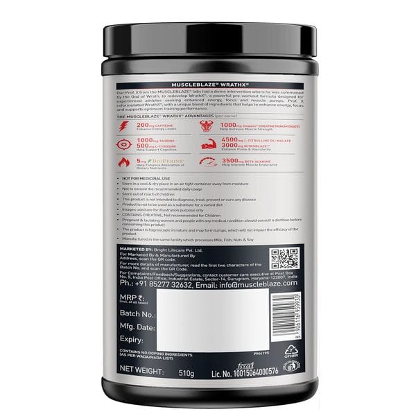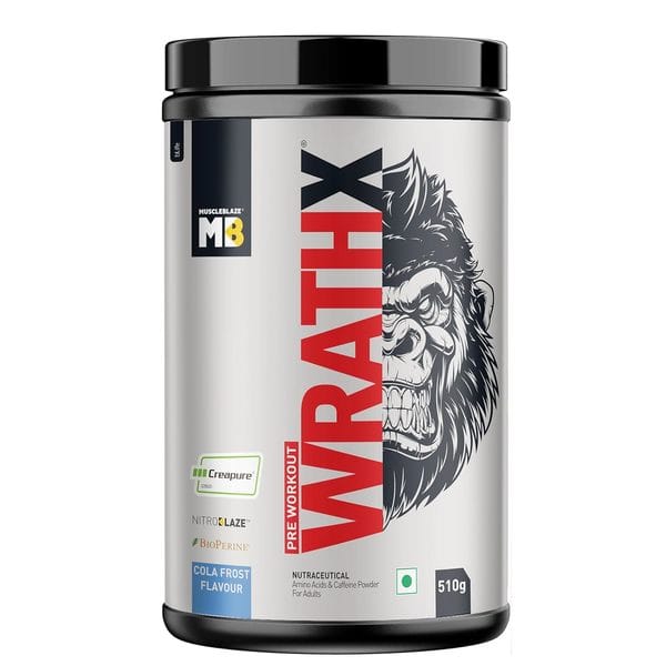 MuscleBlaze Pre Workout WrathX with Creapure, Nitroblaze & BioPerine (Cola Frost, 510 g, 30 Servings)