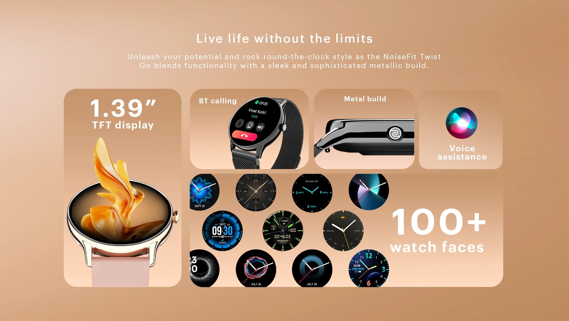 Noise NoiseFit Twist Go Smart Watch 7 days Battery Life Heart rate monitor, SpO2 monitor, Step tracker, Activity history, Sleep monitor, Breathe practice, Stress measurement, Female cycle tracker Bluetooth Calling (Jet Black)