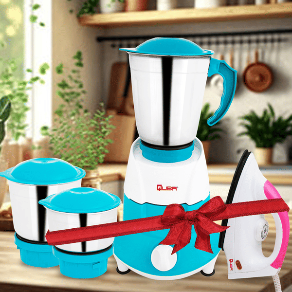 Quba MG-201 1550 W Mixer Grinder & 1000 Watt Dry Iron (White-Aqua Blue)