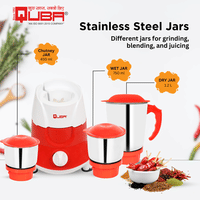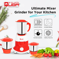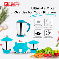Everyday mixing and grinding in the kitchen becomes easier with QUBA mixer grinder MG 201 & 1000watt Dry Iron that serves the best in grinding chutneys, spices and other preparatory ingredients. This mixer grinder has a powerful motor of 550 W that makes it an efficient machine. Easy to use, this mixer grinder has smart features like pulse, over lade protection and speed regulation. This mixer grinder comes with two versatile Stainless Steal jars fitted with super sharp blades to facilitate liquidizing, blending and grinding. Package Includes - 550 Watts Mixer Grinder Motor Unit With Operating Voltage: 230 Volts 50Hz, 1 Big jar with lid, 1 Medium jar 1 Chutney jar with Lid, 1 Mixer Unit, & Dry Iron 1 User manual with Warranty Card.