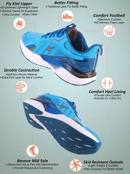 Stand out with the SM-951 mens sports shoes in blue copper. Designed with a comfortable knitted upper and supportive EVA sole, these lace-up shoes are made for performance and style.