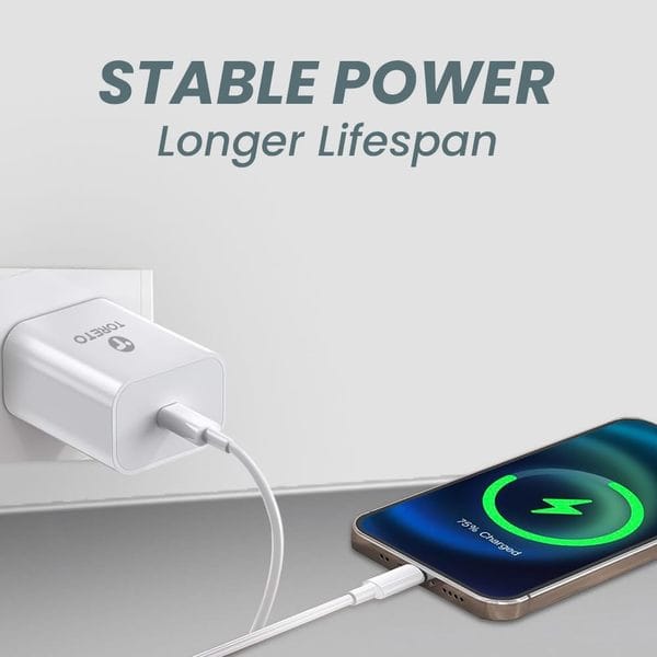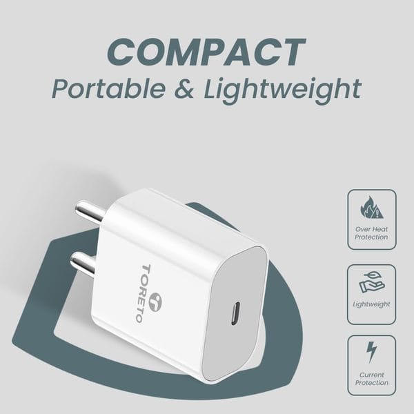 Toreto Zest Mini 30W Type-C Mobile Charger Adapter with Type-c to iPhone fast charging Data Cable, Fast Charger with QC & PD/PPS Technology.