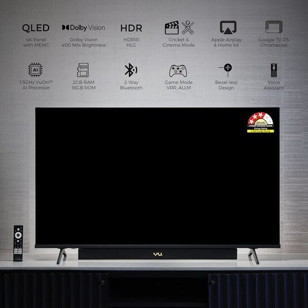 VU 55 inch QLED Smart Google TV 55VIBE-DV