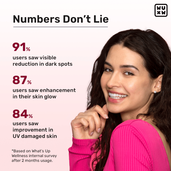 What’s Up Wellness introduces India’s first Liposomal Glutathione Glow Gummy, a highly absorbable antioxidant supplement that supports brighter, even-toned, and youthful skin. As glutathione levels decline with age, this advanced liposomal formula—absorbed 64x better than regular glutathione tablets—helps protect against pollutants, reduce hyperpigmentation, improve fatty liver health, and boost natural collagen production. Powered with Vitamin C and delivered in a tangy orange gummy, it makes daily skin and liver support easy and enjoyable. Just chew one gummy anytime for enhanced radiance, antioxidant protection, and overall wellness.