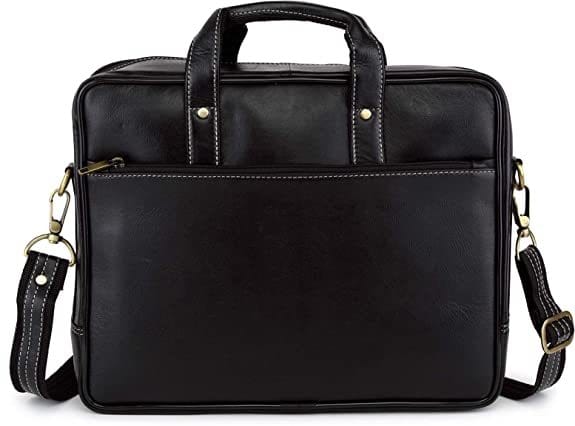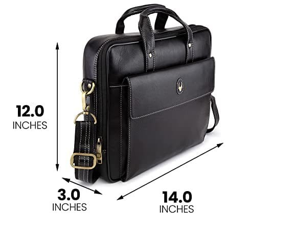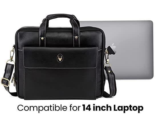 Wildhorn 14 Inch Leather Office Laptop Messenger Bag For Men And Women Black (Black)