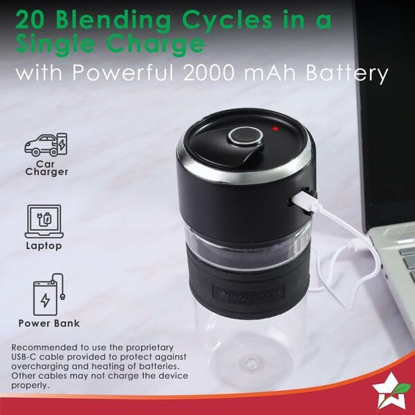 Make a healthy and stylish statement everywhere you go with Nutri-Cup Zip Portable Blender. With a powerful 2000 mAh battery and 8-wing blade, blend your smoothie and healthy shakes within seconds and consume on-the-go with the flip-top sipper! Its compact design its easily in your backpack, car cup-holder or office bag. Make a healthy and stylish statement everywhere you go with Nutri-Cup Zip Portable Blender. Features an in-built battery for easy portability